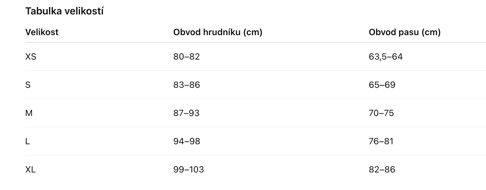 Pas – Měřte kolem svého přirozeného pasu. Je to nejužší místo trupu, přibližně 2–3 cm nad pupíkem. Před měřením se uvolněte a vydechněte.